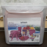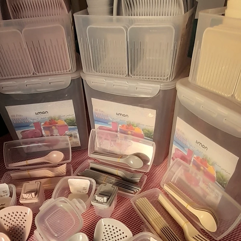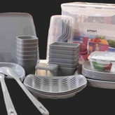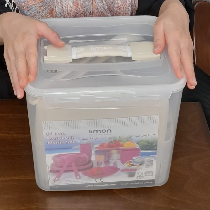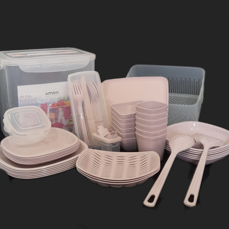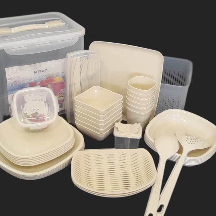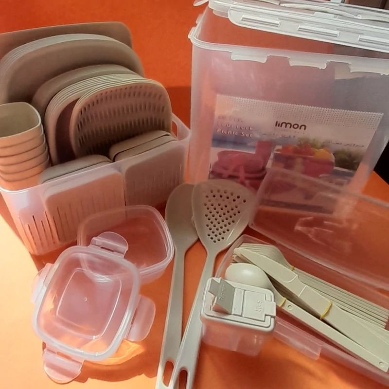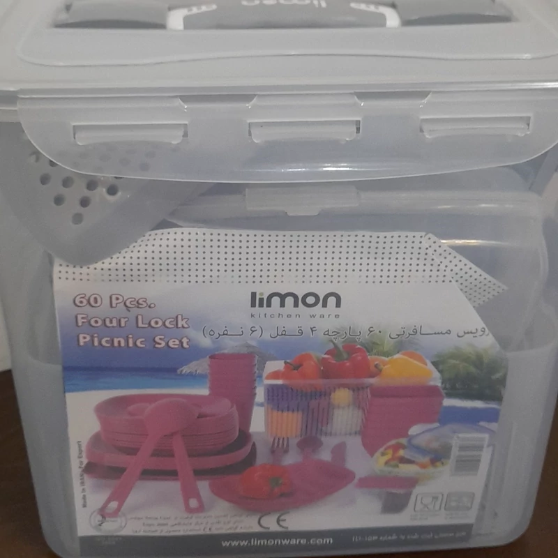 لیمون معرکه است : 60 پارچه و 6 نفره 6 عدد قاشق،6 عدد چنگال و6 عدد کارد (دارای پک نگه دارنده) 6 عدد پلوخوری،6 عدد خورشت خوری،6 عدد میوه خوری 6 عدد لیوان،6 عدد کاسه سالادخوری،3 عدد سبد سبزی کیفگیر و ملاقه،سبد آبکش ،نمکدان دوطرفه یک عدد یک عدد ظرف فریزری 330 میلی لیتر یک پک بزرگ که تمامی ظروف رو درخود جای داده کیفیت کارو در تصاویر از نزدیک میتونی ببینی